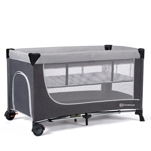 The mattress position can be adjusted on two levels, one in height for infants and a second for older children. A zipped entrance allows the latter to settle in independently once the brakes are activated on both wheels .