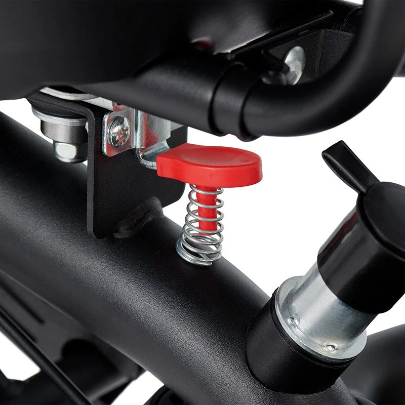 - Poignée parentale réglable en 4 positions, permettant de contrôler le sens de la marche et recouverte d’une matière agréable au toucher